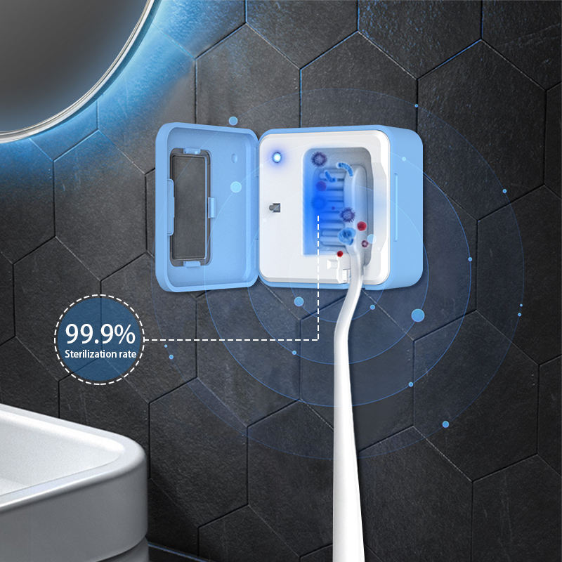 - The UV sterilizer has a 99% sterilization rate and removes the DNA and RNA molecular structure of bacteria to leave a cleaner toothbrush - BUILT IN SAFETY - the product has door detection switch will will immediately stop the sterilization process if opened in order to protect the yes from damage - the UV sterilizer has a 360 degree sterilization rate to disinfect all angles of the toothbrush - the product has a high weight load bearing and can take weights up to 2kg - once charged for a 2 hour period the product can withstand 1 month without charging based on a usage of once per day - the product has an an automatic power engagement/disengagement once usage has completed to specialise in conserving power for the battery technical features: LED Wavelength: 275nm Input Interface: Micro-USB Rated Input: 5V 1A Sterilization Time: 3 minutes Product Size: 5*5*2.6cm Net Weight: 100g Certificates: FCC/CE/RoHS/EPA/Germicidal Test Report Safety: please don't charge this product unattended don't charge this product for longer than 2hrs and 15mins at once Keep out of reach of children and water Avoid light contact with eyes and skin Indicator light description: charge: red light flash charge finished: red light always on sterilize: blue light always on end of work: light off low battery: blue light flashing